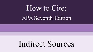 How To Cite Indirect Sources Apa Seventh Edition Youtube